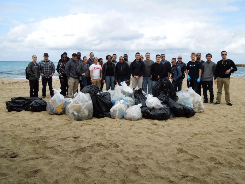 Φωτογραφία: Ο ομάδα του USS George H.W. Bush την ώρα που καθαρίζει την παραλία