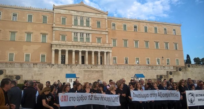 Πριν μερικές μέρες, πάλι, όταν ψηφιζόταν το νέο μνημόνιο, δεν διστάσαμε να διαμαρτυρηθούμε στο γραφείο του αναπληρωτή υπουργού Οικονομικών, στο Γενικό Λογιστήριο του Κράτους, καταγγέλλοντας τον εμπαιγμό που μας επεφύλαξε με το νέο ειδικό μισθολόγιο. Αντί να σεβαστούν τις αποφάσεις του ΣτΕ, ψήφισαν ένα νόμο με νέες περικοπές σε μισθούς και συντάξεις. Αυτή είναι η αξιοπιστία τους.