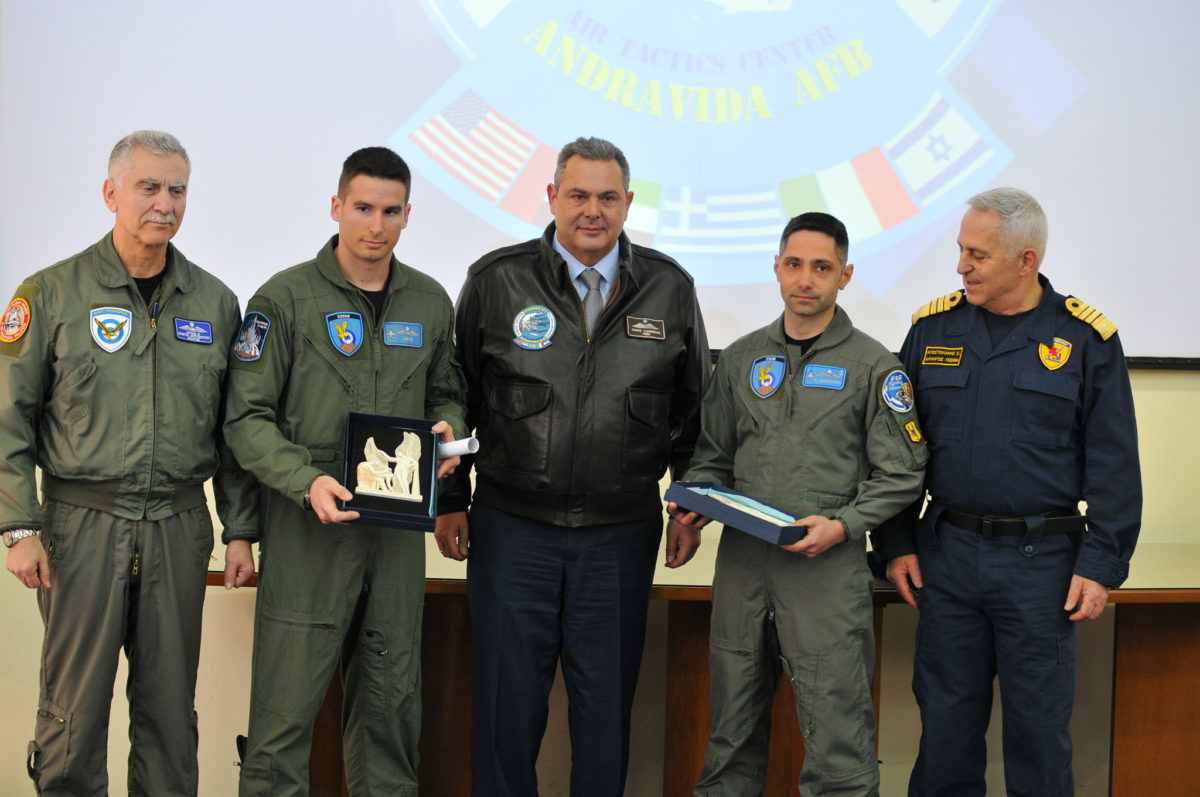 «Είμαι πολύ περήφανος για τις ελληνικές Ένοπλες Δυνάμεις και την Πολεμική μας Αεροπορία και σήμερα βραβεύσαμε και δύο αξιωματικούς μας, οι οποίοι ήρθαν πρώτοι και δεν αξιολογήθηκαν από τις ηγεσίες, αλλά από τους συναδέλφους τους, ως οι καλύτεροι μαχητές και ατομικά και ως σχηματισμοί», συμπλήρωσε.