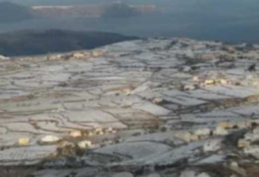 Δεν είναι σίγουρα και η πιο συνηθισμένη εικόνα να βλέπεις τη Σαντορίνη χιονισμένη. Όλοι την έχουμε συνηθίσει ηλιόλουστη… και με αυτό το υπέροχο ηλιοβασίλεμα να τη λούζει λίγο πριν νυχτώσει.