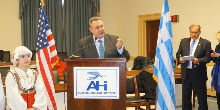 Ο Υπουργός Εθνικής Άμυνας, Πάνος Καμμένος, βρίσκεται στην Ουάσινγκτον όπου παρέστη σε εκδήλωση του Ελληνοαμερικανικού Ινστιτούτου (AHI) στο Κογκρέσο για τον εορτασμό της 25ης Μαρτίου.