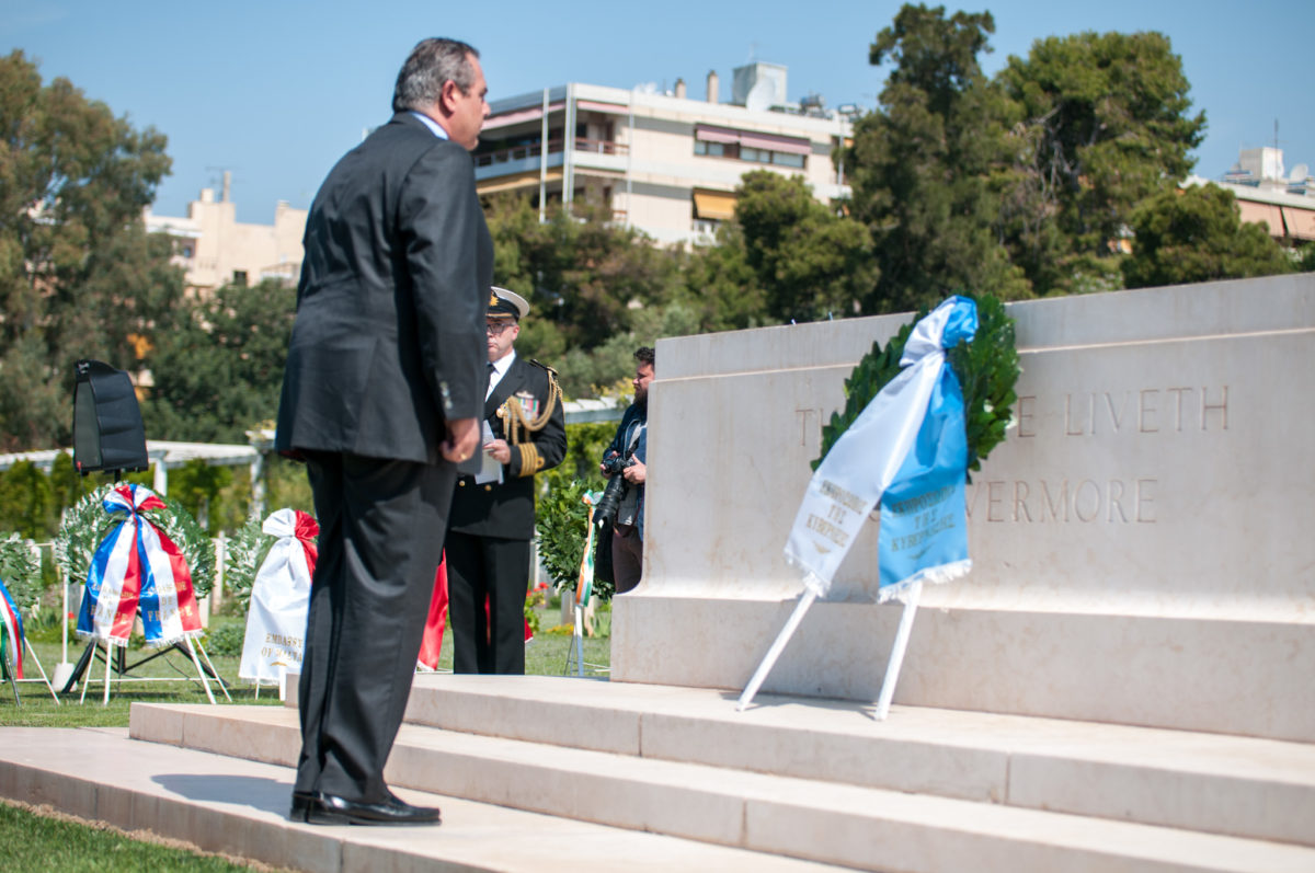 Στην ετήσια επιμνημόσυνη δέηση στη μνήμη των Αυστραλών και Νεοζηλανδών Πεσόντων στη Μάχη της Καλλίπολης (Ημέρα ANZAC),που πραγματοποιήθηκε στο Στρατιωτικό Κοιμητήριο Φαλήρου, παρέστη ο Υπουργός Εθνικής Άμυνας Πάνος Καμμένος, συνοδευόμενος από τον Αρχηγό ΓΕΕΘΑ Ναύαρχο Ευάγγελο Αποστολάκη ΠΝ, Το «παρών» στην επιμνημόσυνη δέηση έδωσε και ο Υφυπουργός Εξωτερικών Τέρενς Κουίκ.