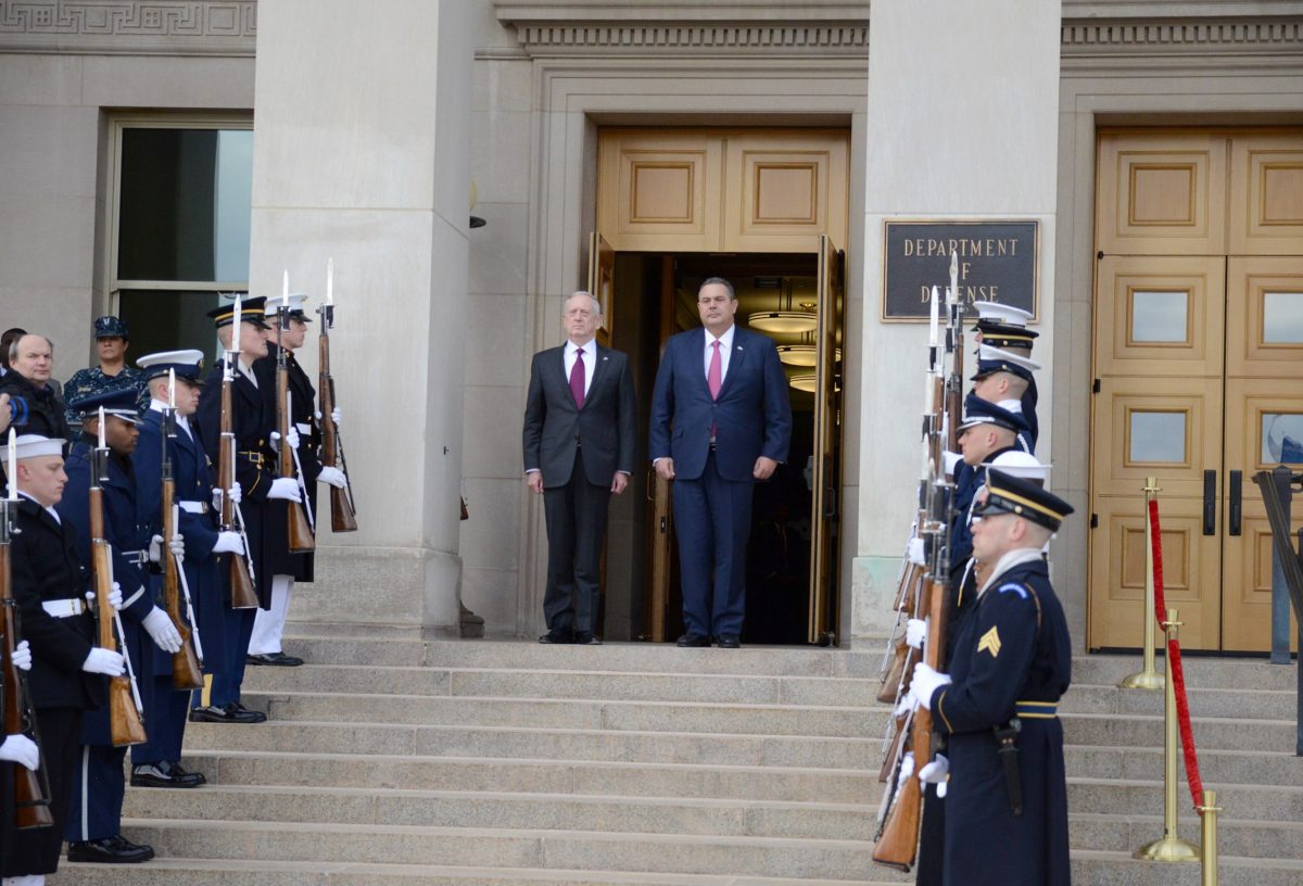 «Ήταν μία εξαιρετική συνάντηση με τον Υπουργό Άμυνας των Ηνωμένων Πολιτειών Αμερικής. Συζητήσαμε όλα τα θέματα που αφορούν τη διμερή συνεργασία, το ΝΑΤΟ και τις πρωτοβουλίες που μπορεί να πάρει η Ελλάδα στην ευρύτερη περιοχή της Μεσογείου και με τις τρίτες χώρες, τη δημιουργία ασπίδας σταθερότητας σε συνεργασία προς τα νότια με το Ισραήλ την Κύπρο, την Αίγυπτο, την Ιορδανία και τα Ηνωμένα Αραβικά Εμιράτα και προς τα βόρεια με τη Βουλγαρία και τη Ρουμανία», δήλωσε ο Υπουργός Άμυνας Πάνος Καμμένος μετα την συνάντηη του με τον Υπουργό Άμυνας των ΗΠΑ Τζέιμς Μάτις.