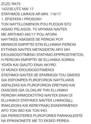 Να σημειώσουμε οτι ο Σταθμός της Λήμνου ενημέρωσε τους ναυτιλομμένους ότι η τουρκική NAVTEX 492/17 συμπεριλάμβανε και περιοχή Ελληνικής ευθύνης παροχής υπηρεσιών Navtex και συνεπώς εχει εκδοθεί από μη αρμόδιο σταθμό. Το μήνυμα παρακάτω όπως αναρτήθηκε στην ελληνική υδρογραφική υπηρεσία.