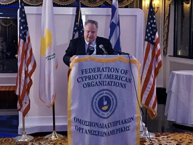 «Νοιώθω να έχω δύο πατρίδες: τη μητέρα μου Ελλάδα και την αδερφή μου Κύπρο» δήλωσε συγκινημένος ο υπουργός Εξωτερικών στον χαιρετισμό που απηύθυνε παραλαμβάνοντας το βραβείο. Βραβείο με ιδιαίτερα μεγάλη βαρύτητα, που απονέμεται ετησίως σε άτομα με «παραδειγματική προσφορά στα εθνικά συμφέροντα και την ασφάλεια της Κύπρου», αν λάβει κανείς υπόψη του ότι στους αποδέκτες του συμπεριλαμβάνονται, ο τέως αντιπρόεδρος των ΗΠΑ, Τζο Μπάιντεν, ο πρώην πρωθυπουργός της Ελλάδας Κώστας Καραμανλής, οι γερουσιαστές Ρόμπερτ Μενέντεζ και Τσαρλς Σούμερ κ.α. ενώ η εκδήλωση τελεί υπό την τιμητική προεδρία του Προέδρου της Κυπριακής Δημοκρατίας Νίκου Αναστασιάδη και του αρχιεπισκόπου Αμερικής Δημητρίου, οι οποίοι βεβαίως ήταν παρόντες στην εκδήλωση. Όπως, επίσης, παρόντες ήταν στην τιμητική βραδιά, και o Κύπριος κυβερνητικός εκπρόσωπος Νίκος Χριστοδουλίδης, αλλά και οι επικεφαλής των διπλωματικών αποστολών της Ελλάδας και της Κύπρου σε Ουάσιγκτον και Νέα Υόρκη.