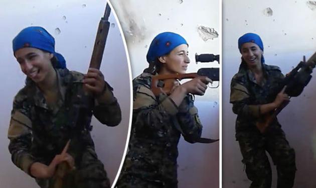 Εκπληκτικό βίντεο βγήκε στον άερα που απαθανατίζει γυναίκα ελεύθερο σκοπευτή του κουρδικού YPG να γελάει και να βγάζει τη γλώσσα της στην κάμερα μετά από την άστοχη προσπάθεια του Ισλαμικού κράτους να την..»βγάλει από τη μέση»..