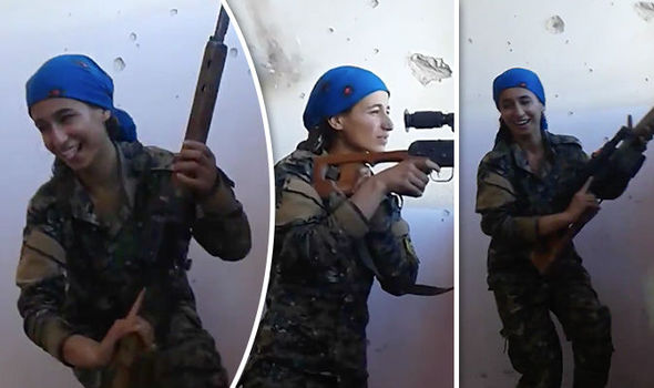 Εκπληκτικό βίντεο βγήκε στον άερα που απαθανατίζει γυναίκα ελεύθερο σκοπευτή του κουρδικού YPG να  γελάει και να βγάζει τη γλώσσα της στην κάμερα μετά από την άστοχη προσπάθεια του Ισλαμικού κράτους να την..»βγάλει από τη μέση»..