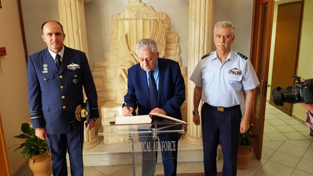 Ειδικότερα επισκέφθηκε το Εθνικό Κέντρο Αεροπορικών Επιχειρήσεων (ΕΚΑΕ) στο Κουτσόχερο Λάρισας, το Αρχηγείο Τακτικής Αεροπορίας (ΑΤΑ) και στη συνέχεια την 337 Μοίρα στην 110 Πτέρυγα Μάχης.Ο ΑΝΥΕΘΑ απευθυνόμενος σε στελέχη της Πολεμικής Αεροπορίας, εξήρε τον αποφασιστικό τους ρόλο στην ενίσχυση της αποτρεπτικής ισχύος της χώρας μας, ενώ έκανε ειδική αναφορά στη θυσία του Σμηναγού Γεώργιου Μπαλταδώρου, που έχασε τη ζωή του εκτελώντας το καθήκον του.
