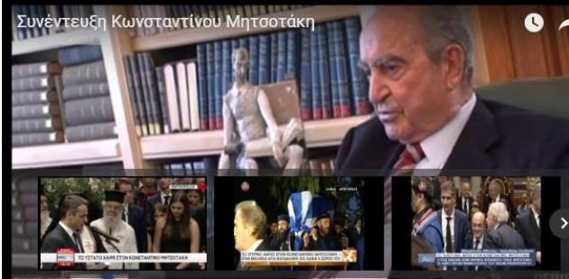 Έτσι κι έγινε. Σε μια ειδική εκπομπή το βράδυ της Τετάρτης και ενώ στα Χανιά, στη γενέτειρά του γινόταν η αγρυπνία του πριν από την ταφή του, σήμερα, στο νεκροταφείο του Αργουλιδέ δίπλα στη Μαρίκα του, παρουσιάστηκε ένα μέρος, σχεδόν 6 λεπτά, από αυτή την πολύωρη συνέντευξη του Κωνσταντίνου Μητσοτάκη, του τελευταίου των μεγάλων που γνώρισε η Ελλάδα.