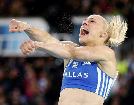 Η ελληνική αποστολή στο ευρωπαϊκό πρωτάθλημα στίβου πανηγυρίζει το πρώτο της μετάλλιο με την Νικόλ Κυριακοπούλου να ανεβαίνει στο τρίτο σκαλί του βάθρου με επίδοση 4.60 στο άλμα επί κοντώ.