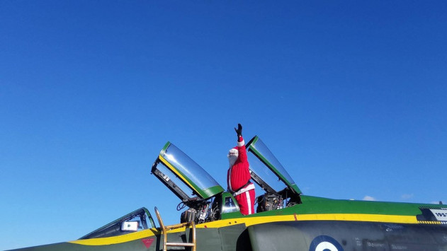 Τον Άι Βασίλη έφερε στην Λάρισα με phantom F4 ο διοικητής της 110 Π.Μ Κωσταντίνος Καραμεσίνης οποίος και πιλοτάρισε το διθέσιο πολεμικό αεροσκάφος.