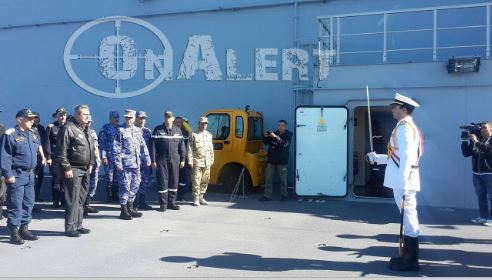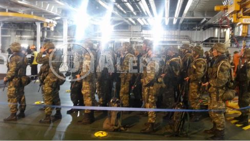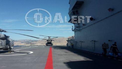 Σημειώνεται, ότι η μοίρα αμφίβιων καταδρομών Z MAK, βρίσκεται επίσης στο ελικοπτεροφόρο και ετοιμάζεται για άσκηση απόβασης.