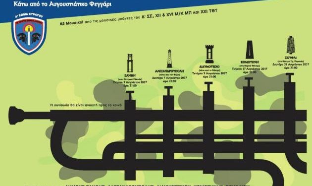 Σύμφωνα με την ανακοίνωση του ΓΕΣ το μουσικό οδοιπορικό ετοιμάζεται στο πλαίσιο των δράσεων εξωστρέφειας του Στρατού Ξηράς,τον Αύγουστο με τη συμμετοχή των Τμημάτων Στρατιωτικής Μουσικής του Σώματος και των Σχηματισμών του, σε συνεργασία με τους Δήμους Ξάνθης, Αλεξανδρούπολης, Διδυμοτείχου, Κομοτηνής και Σουφλίου.