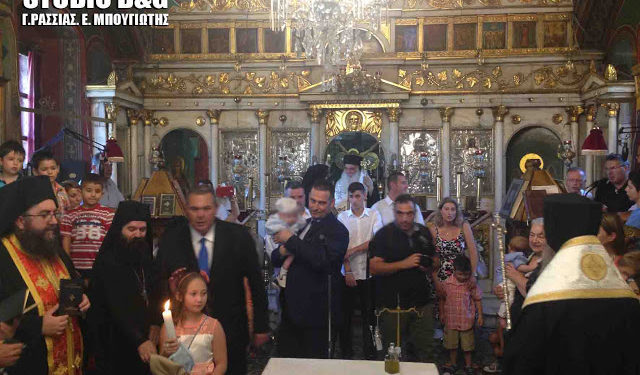Νονός του νεοφώτιστου Κωνσταντίνου ο υπουργός Εθνικής Άμυνας Πάνος Καμμένος. Η χαρμόσυνη τελετή, έγινε στην ίδια εκκλησία που είχε κηδευτεί ο πατέρας του.