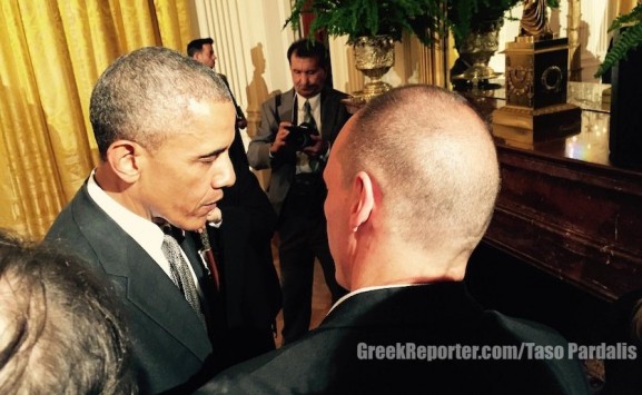 Η συνάντηση Βαρουφάκη – Ομπάμα έγινε στο περιθώριο της εκδήλωσης του Λευκού Οίκου για την 25η Μαρτίου.