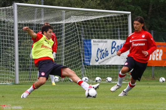 Οι παίκτες του Ολυμπιακού πραγματοποίησαν την πρώτη τους απογευματινή προπόνηση επί αυστριακού εδάφους, ενώ την ίδια ώρα που ο Αργεντινός μέσος έκανε θεραπεία. Ο Λεονάρντο Ζαρντίμ δούλεψε τόσο στον τεχνικό, όσο και τον τομέα της φυσικής κατάστασης των παικτών….Χωρισμένοι σε γκρουπ, οι παίκτες σχημάτιζαν τρίγωνα και…