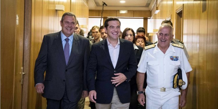 Την τυπική δήλωση με ευχολόγια για τα στελέχη των Ενόπλων Δυνάμεων έκανε ο πρωθυπουργός Αλέξης Τσίπρας μετά από δυο ώρες ενημέρωση που του έγινε κατά τη διάρκεια της Άσκησης ΠΑΡΜΕΝΙΩΝ 2016.