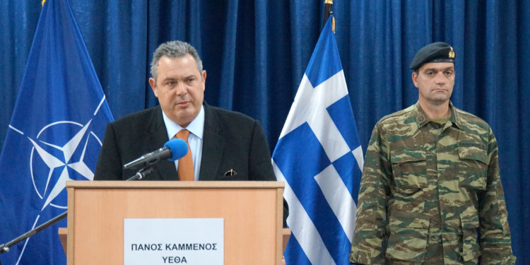 Ο Υπουργός Εθνικής Άμυνας Πάνος Καμμένος, συνοδευμένος από τον Αρχηγό ΓΕΕΘΑ Ναύαρχο Ευάγγελο Αποστολάκη ΠΝ, επισκέφθηκε την έδρα της Ελληνικής Δύναμης Κοσσυφοπεδίου στην περιοχή της Πρίστινα, προκειμένου να ανταλλάξει ευχές με το προσωπικό ενόψει του Πάσχα.
