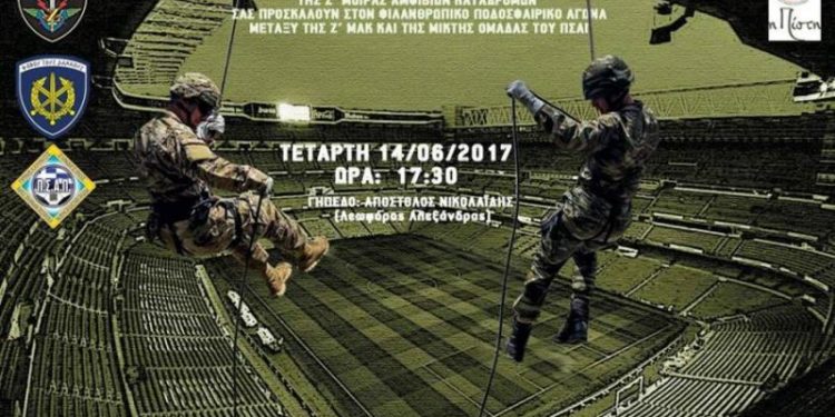 Ποδοσφαιρικός αγώνας για καλό σκοπό πρόκειται να διεξαχθεί μεταξύ της Ζ’ ΜΑΚ και της μικτής ομάδας ΠΣΑΠ, στο Γήπεδο Απόστολος Νικολαΐδης (Λεωφόρος Αλεξάνδρας) την Τετάρτη 14 Ιουνίου 2016, στις 17.30 το απόγευμα. Τα έσοδα από τα εισιτήρια θα διατεθούν στην κιβωτό του κόσμου.Ο αγώνας διοργανώνεται με πρωτοβουλία της Ζ’ Μοίρας Αμφίβιων Καταδρομών.