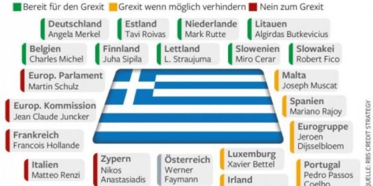 Οι χώρες της Βαλτικής (Λετονία, Εσθονία, Λιθουανία), η Ολλανδία, η Φινλανδία, η Σλοβακία και η Σλοβενία θα ήθελαν να διώξουν την Ελλάδα από την ευρωζώνη. Κάποιες μάλιστα και χωρίς διαπραγματεύσεις. Οι ανατολικοευρωπαίοι έχουν εφαρμόσει σκληρές μεταρρυθμίσεις και τώρα δεν επιθυμούν να δώσουν άλλα χρήματα στην Αθήνα. Μεταξύ των χωρών που είναι έτοιμες για ένα Grexit βρίσκεται και το Βέλγιο.