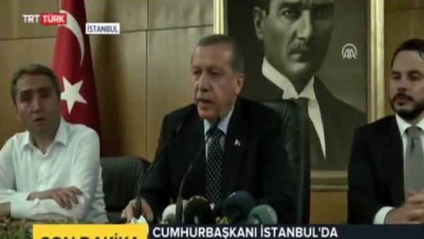 Απευθυνόμενος σ’ ένα πλήθος χιλιάδων υποστηρικτών του που κρατούσαν σημαίες στο κύριο αεροδρόμιο της Κωνσταντινούπολης, ο Ερντογάν δήλωσε πως η κυβέρνηση παραμένει στο τιμόνι. Δήλωσε ακόμη πως η αναταραχή συνεχίζεται στην Άγκυρα και πως ελπίζει ότι θα τελειώσει σύντομα.