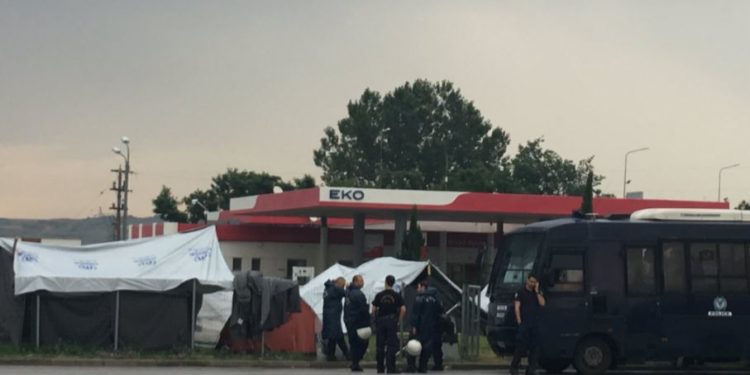 Ξεκίνησε λίγο πρν από τις 7:30 η επιχείρηση εκκένωσης του βενζινάδικου στην ΠΑΘΕ, στο ύψος Πολυκάστρου, #refugeesGr pic.twitter.com/IGAhcUQ5hI