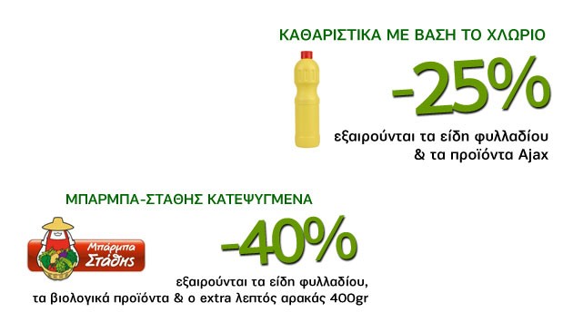 (Εξαιρούνται τα Είδη Φυλλαδίου, τα Βιολογικά Προϊόντα και ο Extra Λεπτός Αρακάς 400γρ.)