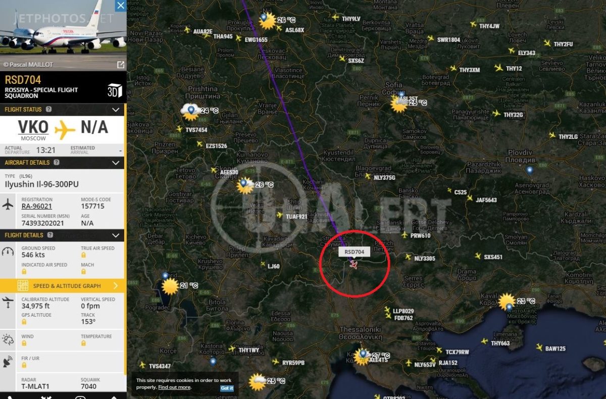 Λίγο πριν το προεδρικό αεροσκάφος, ένα άλλο αεροσκάφος ειδικών επιχειρήσεων της Ρωσικής Αεροπορίας είχε προσγειωθεί στο αεροδρόμιο Ελευθέριος Βενιζέλος.