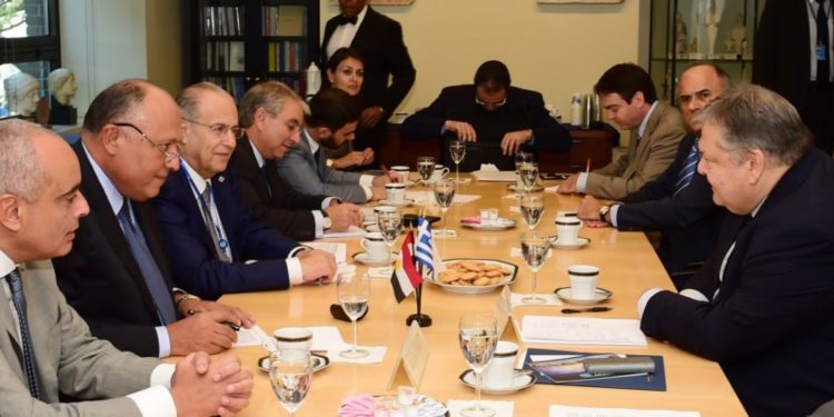 Η συνεργασία Ελλάδας-Κύπρου-Αιγύπτου αποτελεί «πυλώνα σταθερότητας» στην περιοχή της Ανατολικής Μεσογείου, αναφέρεται στο κοινό ανακοινωθέν των τριών χωρών, το οποίο δόθηκε χθες το βράδυ στη δημοσιότητα και είχε συμφωνηθεί στη συνάντηση του αντιπροέδρου της κυβέρνησης και υπουργού Εξωτερικών, Ευάγγελου Βενιζέλου, με τους ομολόγους του, Ιωάννη Κασουλίδη και Σαμέχ Σούκρι, την περασμένη Παρασκευή (για δεύτερη συνεχόμενη χρονιά), στο Γραφείο Τύπου της Μόνιμης Αντιπροσωπείας της Ελλάδας στον ΟΗΕ.