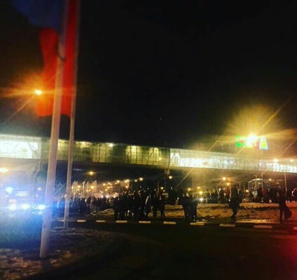 Αστυνομικοί με εκπαιδευμένα σκυλιά ερεύνησαν την περιοχή. Σύμφωνα με πληροφορίες από τα μέσα κοινωνικής δικτύωσης, έχουν εκκενωθεί τα μπορεικά κέντρα Dacha Mega Belaya, Gagarinsky και Europark.