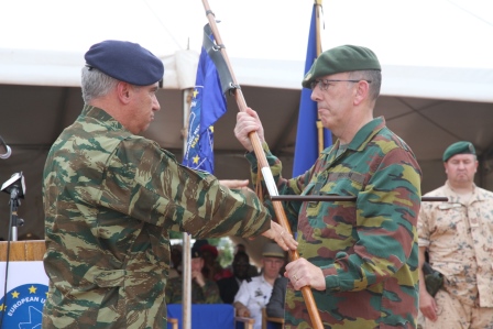 Κατά την τελετή, ο απερχόμενος Γερμανός Ταξίαρχος Werner Αlbl παρέδωσε την διοίκηση στον Βέλγο Ταξίαρχο Eric Harvent ως νέου διοικητή της αποστολής.