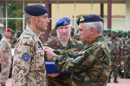Στο πλαίσιο της τελετής, ο Στρατηγός Κωσταράκος εξήρε την ηγεσία του απερχόμενου Διοικητή ευχόμενος παράλληλα κάθε επιτυχία στο έργο και την αποστολή του νέου, τονίζοντας το ρόλο και τη συμβολή της Αποστολής Εκπαίδευσης της ΕΕ στην υπεύθυνη και αποτελεσματική ανασυγκρότηση των Ενόπλων Δυνάμεων της χώρας ικανών να εξασφαλίσουν την μακροπρόθεσμη ασφάλεια και την αποκατάσταση της εδαφικής ακεραιότητας του Μάλι .