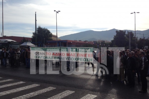 Συγκέντρωση διαμαρτυρίας πραγματοποιούν εργαζομένοι στα ναυπηγεία Σκαραμαγκά έξω από το Πεντάγωνο. Κλειστά και τα δύο ρεύματα της Μεσογείων αυτή την ώρα. Ισχυρές αστυνομικές δυνάμεις βρίσκονται παρατεταγμένες στην είσοδο του Υπουργείου Εθνικής Αμυνας.