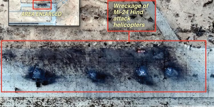 Σύμφωνα με δορυφορικές εικόνες που παρουσίασε, το διάστημα μεταξύ 16 και 17 Μαϊου η αεροπορική βάση Tiyas που βρίσκεται στην περιοχή της Χομς κοντά στην Παλμύρα δέχθηκε επίθεση με αποτέλεσμα να χτυπηθούν τέσσερα ρωσικά ελικόπτερα.