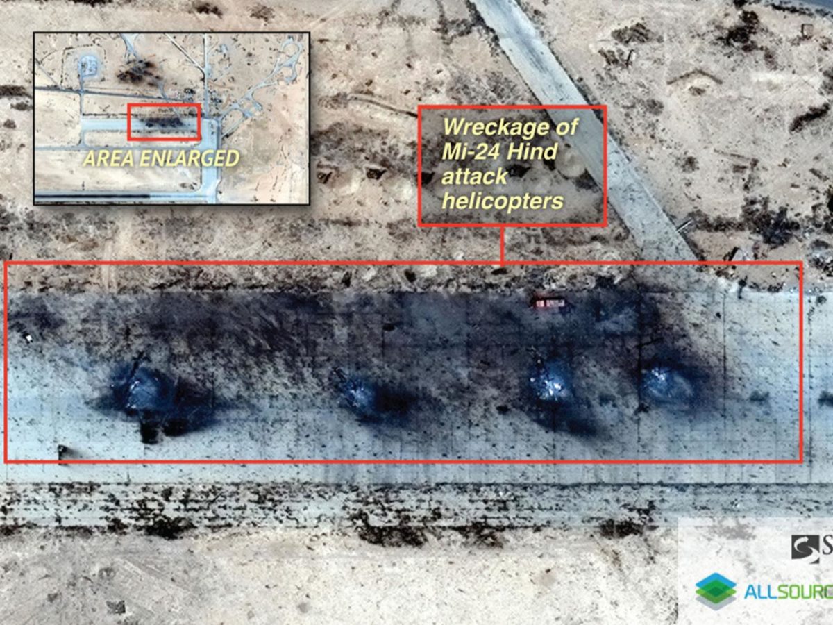 Σύμφωνα με δορυφορικές εικόνες που παρουσίασε, το διάστημα μεταξύ 16 και 17 Μαϊου η αεροπορική βάση Tiyas που βρίσκεται στην περιοχή της Χομς κοντά στην Παλμύρα δέχθηκε επίθεση με αποτέλεσμα να χτυπηθούν τέσσερα ρωσικά ελικόπτερα.