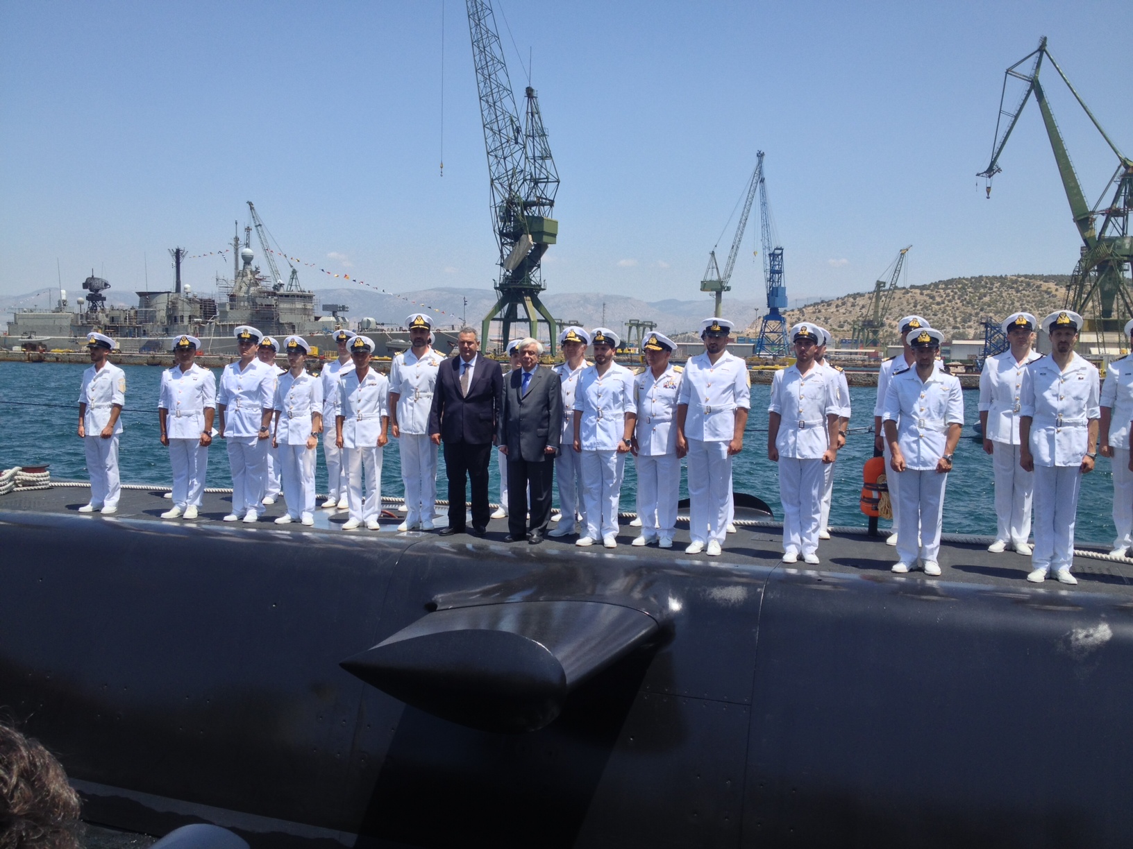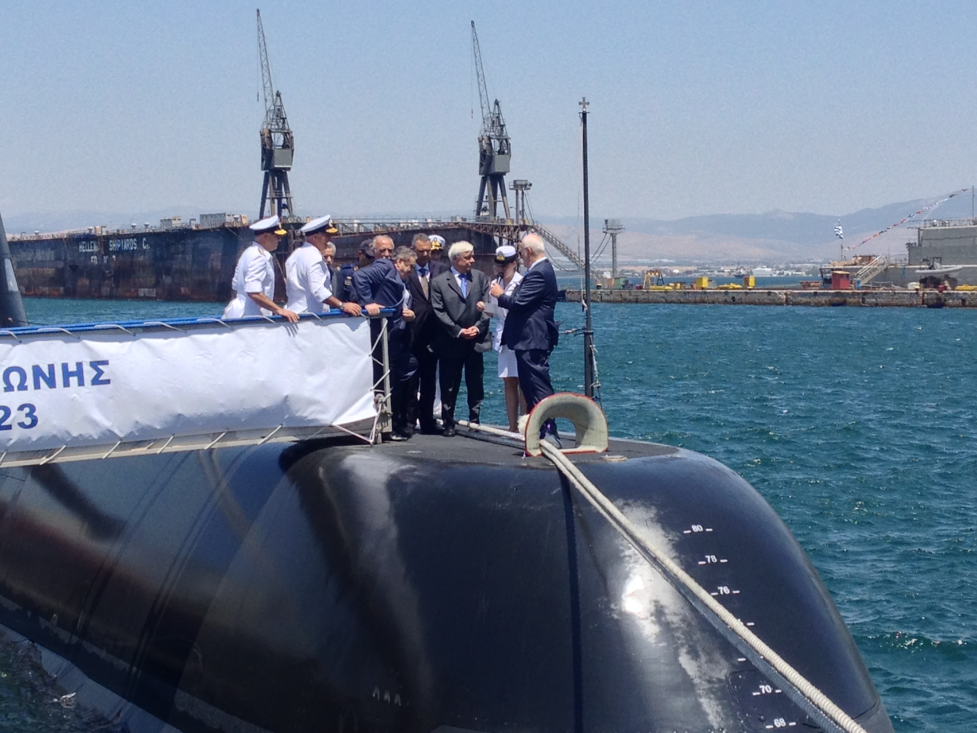 Παρουσία του Προέδρου της Δημοκρατίας έγινε σήμερα το πρωί η τελετή ονοματοδοσίας και η ύψωση της ελληνικής σημαίας στα υποβρύχια «Ματρώζος» και «Κατσώνης», στα ναυπηγεία Σκαραμαγκά.