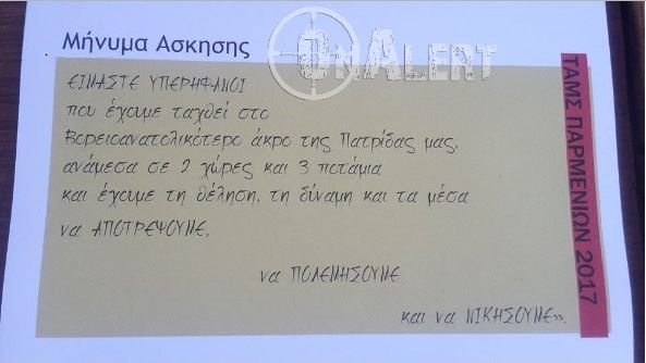 Ο ΠΑΡΜΕΝΙΩΝ ήρθε και έφυγε αφήνοντας πίσω του πλήθος εικόνων που ξεχώρισαν οι οποίες σχεδόν όλες έστειλαν το ίδιο μήνυμα:»Είμαστε υπερήφανοι. Έχουμε τη θέληση, τη δύναμη και τα μέσα να ΑΠΟΤΡΕΨΟΥΜΕ,ΝΑ ΠΟΛΕΜΗΣΟΥΜΕ, ΝΑ ΝΙΚΗΣΟΥΜΕ. Ένα μήνυμα που στέλνουν οι Ένοπλες Δυνάμεις προς πάσα κατεύθυση στο πλαίσιο της άσκησης. Ο ΠΑΡΜΕΝΙΩΝ έφερε τη μυρωδιά πολέμου που έπρεπε να φέρει και οι Ένοπλες Δυνάμεις μας δοκίμασαν τις ικανότητες τους για μια ακόμη φορά, όπως γίνεται κάθε χρόνο.