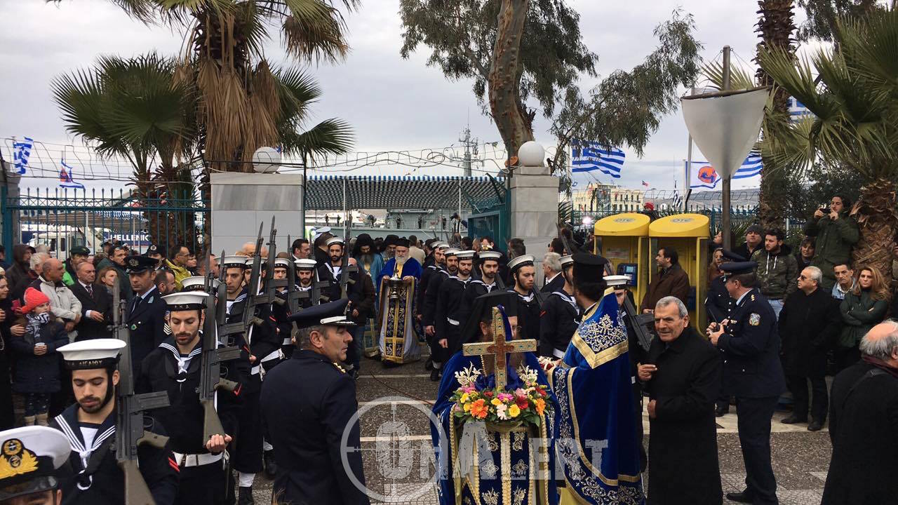 Πριν από λίγο ολοκληρώθηκε η δοξολογία στη Μητρόπολη Πειραιά όπου χωροστάτησε ο Αρχιεπίσκοπος Αθηνών Ιερώνυμος και ακολούθησε ιερά πομπή προς το λιμάνι του Πειραιά, όπου είχε στηθεί ειδική εξέδρα για την τελετή αγιασμού των υδάτων.