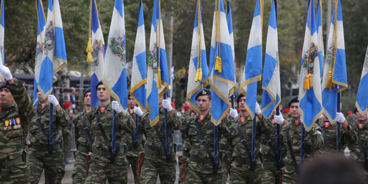 δ. Παρέλαση τμημάτων αναπήρων πολέμου, μαθητών, σπουδαστών, προσκόπων, οδηγών και τμημάτων των Ενόπλων Δυνάμεων (όπου υπάρχουν), διάρκειας 40-60 λεπτών. Τάγματα Εθνοφυλακής δεν θα παρελάσουν.