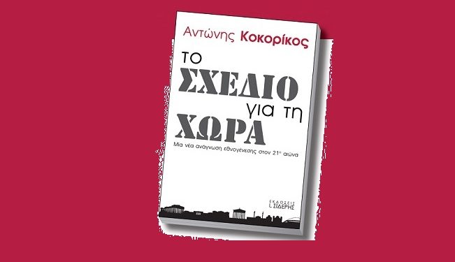 «Το σχέδιο για τη Χώρα» είναι ο τίτλος του βιβλίου του δημοσιογράφου Αντώνη Κοκορίκου, το οποίο κυκλοφόρησε από τις εκδόσεις Ι.Σιδέρη και επιχειρεί να συμβάλει στον στρατηγικό σχεδιασμό για τη χώρα- ένα κομμάτι της δημόσιας ζωής που είναι πάντα είτε ελλειμματικό είτε απουσιάζει παντελώς!
