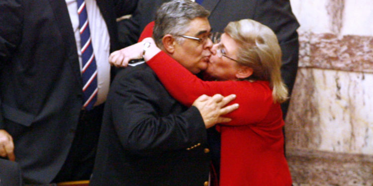 Το θερμό φιλί του ζεύγους Μιχαλολιάκου στην Βουλή
