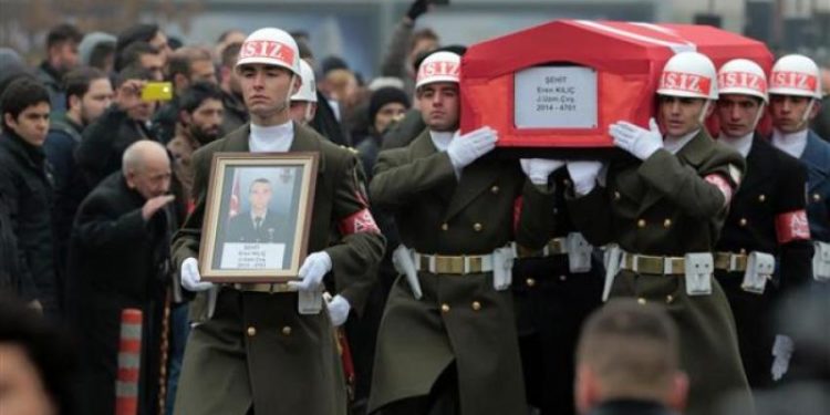 Ένας Τούρκος στρατιώτης σκοτώθηκε και άλλοι τρεις τραυματίστηκαν σε μια επίθεση με ρουκέτες εναντίον τουρκικών αρμάτων μάχης σε περιοχή κοντά στην πόλη Τζαράμπλους στη βόρεια Συρία σήμερα, γνωστοποίησαν τουρκικές στρατιωτικές πηγές.