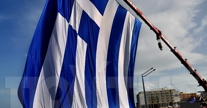 Σύμφωνα με την εφημερίδα η γαλανόλευκη ξεδιπλώθηκε παρουσία του νέου Ταξίαρχου Γ. Μπικάκη, δεκάδων παρευρισκομένων αλλά και της πολιτικής ηγεσίας του νησιού, χθες Πέμπτη, παραμονή της Εθνικής μας Επετείου.