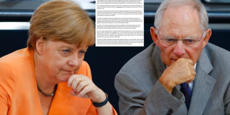 Προβλέπει είτε πενταετή έξοδο της Ελλάδας από την ευρωζώνη, είτε τριετές πακέτο έναντι ενεχύρου κρατικής περιουσίας ύψους 50 δις ευρώ.