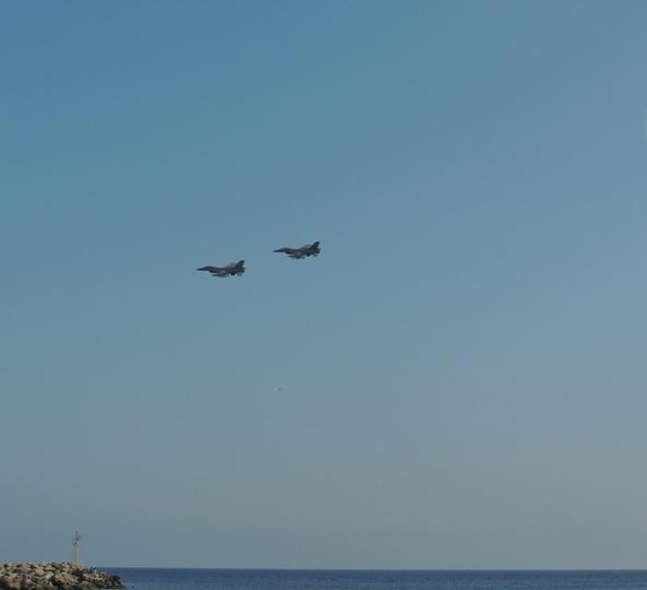 Το Ζεύγος μαχητικών F16 της πολεμικής μας αεροπορίας, πέταξε σήμερα λίγο μετά τις 10 το πρωί σε χαμηλό σχετικά ύψος άνω απο την πόλη της Ρόδου προκειμένου να καταγραφεί το ακριβές δρομολόγιο που θα ακολουθήσει ο πιλότος του αντίστοιχου αεροσκάφους που θα πετάξει την ημέρα της παρέλασης για την ενσωμάτωση στο τέλος των προγραμματισμένων εκδηλώσεων.