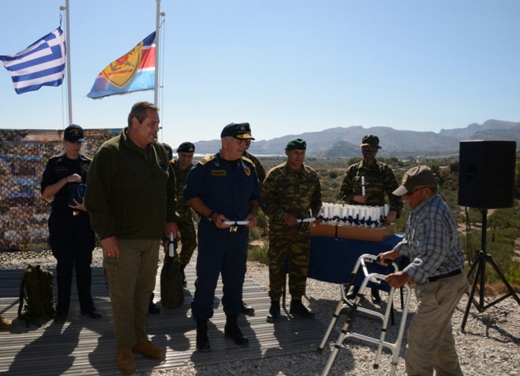 Ο γηραιότερος Εθνοφύλακας και καταδρομέας υποδέχθηκε τον Πάνο Καμμένο στην Ρόδο κατά την διάρκεια της ασκήσεως ΠΑΡΜΕΝΙΩΝ 2017.